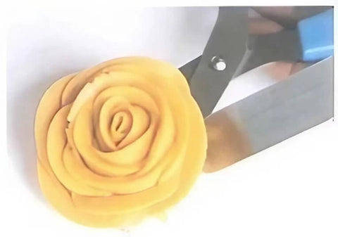 Use a spatula or the back of a spoon to assist in gently lifting the flower from the scissors.