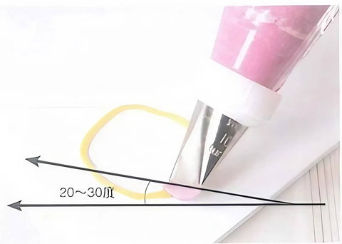The angle of the piping nozzle is a crucial element in the piping process, determining the shape of the piped flower petals. Throughout this book, you'll frequently encounter instructions to "position the piping nozzle at a 20-30 degree angle to the surface"this is the fundamental placement angle. Generally, when piping petals, begin with outer petals, gradually increasing the angle of the piping nozzle as you move toward the center (an increase of about 5-10 degrees). Also, the piping nozzle must touch the previous layer of petals.