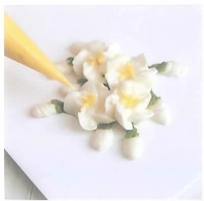 - Repeat the previous step, piping more clusters of small, adorable flowers.
