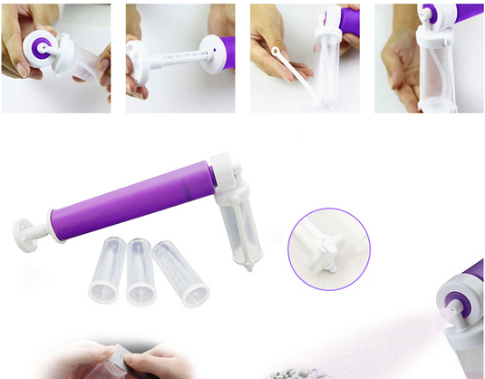 Manual Airbrush: The manual spray gun is equipped with a pump sprayer and 4pcs reservoirs. Use the Manual Airbrush to easily apply paint or spray glitter on cakes, cupcakes, desserts, and other sweet creations in minutes.