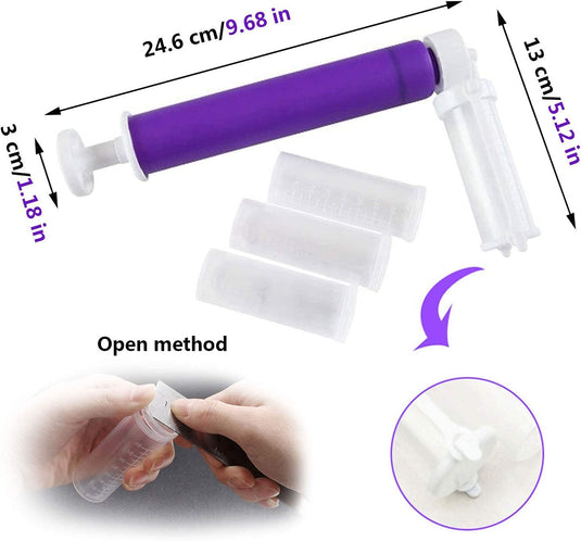 Easy to use and clean: This handy cake decorating pump is great for the beginner cake decorators and seasoned professionals. The manual airbrush gives you full control over the pressure with which your spray is applied. The transparent canister allows you to check the amount of liquid stored. Work with maximizing precision.